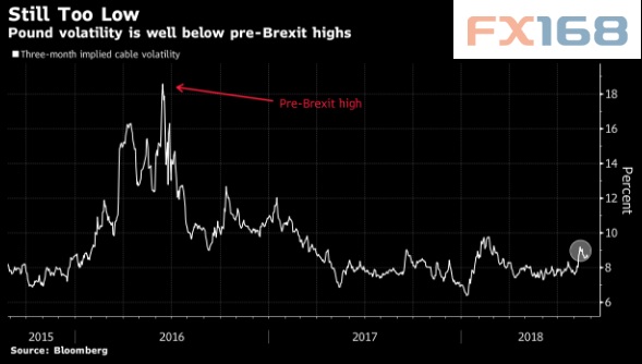 分析师们表示,英镑兑美元的三个月期波动率已经从今年早些时候的低点回升,但仍然不够高,未能充分体现脱欧相关风险。