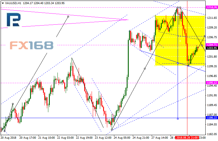 (黄金1小时图 来源:RoboForex、FX168财经网)