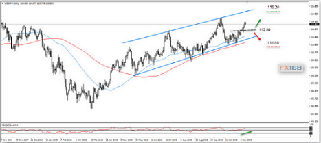 本周汇价展开攀升的态势,多头升破了112.50-112.80区域的重要阻力区域,确认了市场看涨的情绪,前方初步阻力位见于115.80,支撑位见于112.80-50。