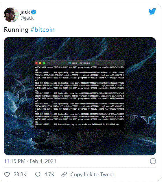 多尔西是著名的比特币支持者,他将比特币支付引入了Square的现金应用程序,并推出了支持比特币开发的Square Crypto团队。去年2月,他让Twitter推出了一个关于比特币的标签。