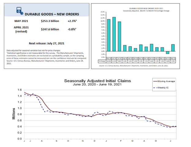 上周美国初请失业金人数经季节调整后减少7000人,为41.1万人。美国5月耐用品订单从4月0.8%的下滑中恢复,环比上升2.3%,创1月以来最大增幅。以上宏观数据均突显出后疫情时代美国经济的强劲复苏。