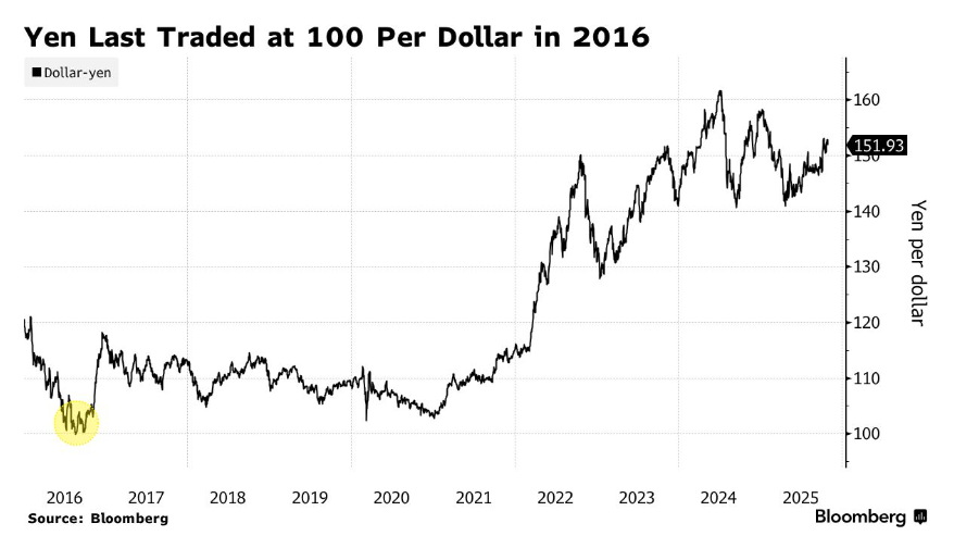 自日本央行2016年实施负利率政策以来,美元兑日元汇率上一次接近100还是那时。此后日元长期处于结构性疲软状态,导致资本外流及套息交易盛行,但同时也支撑了日本出口商,并推动国内股市上涨。目前,日经225指数与东证指数均接近历史高位。