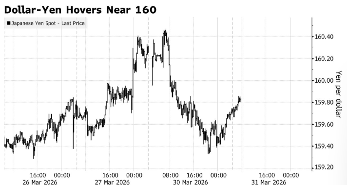 日元周一(3月30日)跌至2024年7月以来的最弱水平,促使日本最高外汇事务官员三村淳警告称,如果当前局面持续,当局可能会在外汇市场采取果断行动。此前,日本财务大臣片山皋月已于3月27日发表过类似言论,当天美元兑日元收于160上方。