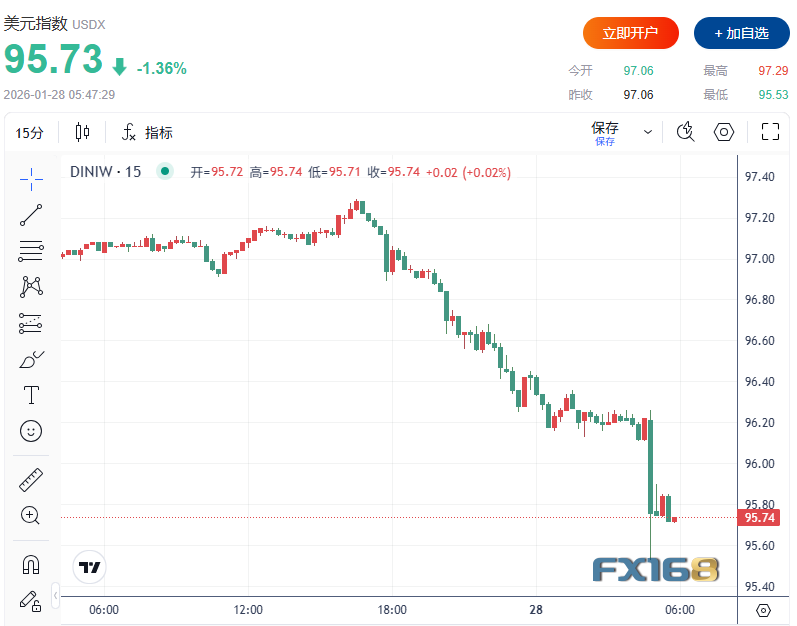 受特朗普言论影响,美元指数(DXY)快速跳水逾70点,刷新2022年2月以来新低至95.53。