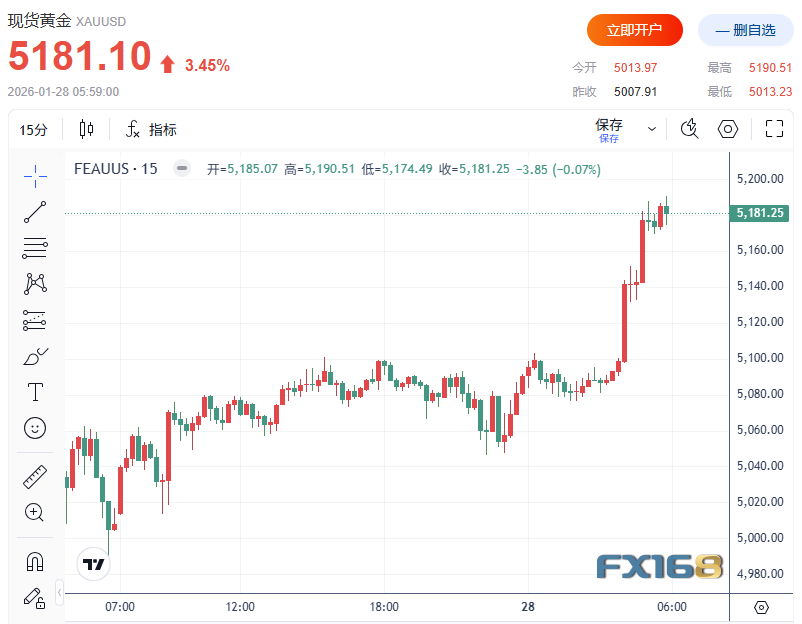 与此同时,贵金属继续受益于美元下跌与避险需求升温,现货黄金价格延续强势,刷新历史高位至5190.51美元/盎司。