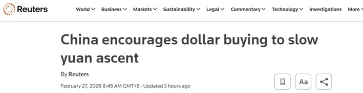 一则重磅消息令人民币应声走软!路透:中国鼓励买入美元以放缓人民币升值步伐